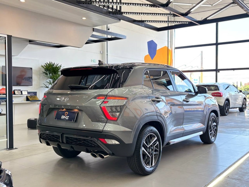O Hyundai Creta N Line 2023 é um SUV que une visual esportivo, conforto e tecnologia em um conjunto bem equilibrado. A versão N Line traz detalhes exclusivos no design, com acabamento diferenciado, linhas mais marcantes e proposta mais dinâmica, sem abrir mão da praticidade do dia a dia.